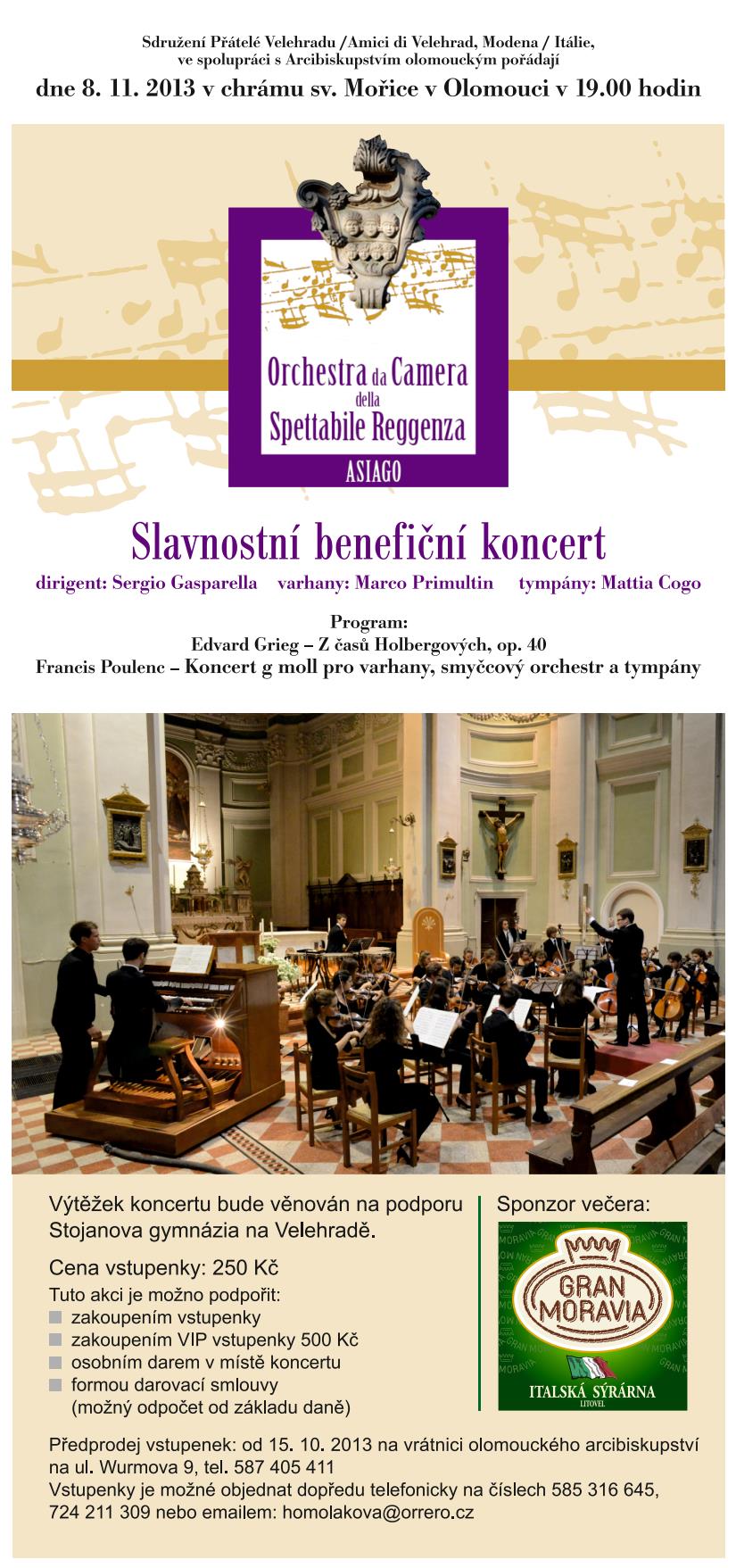 Rádi bychom touto cestou Vás a Vaše farníky pozvali na slavnostní benefiční koncert, který pořádá italská nadace Amici di Velehrad – Přátelé Velehradu ve spolupráci s Arcibiskupstvím olomouckým. Koncert se bude konat v pátek 8. 11. 2013 v 19:00 v chrámu sv. Mořice v Olomouci a jeho výtěžek bude věnován na podporu sociálně slabých žáků našeho gymnázia. Cena jedné vstupenky je 250,- Kč. Plakát koncertu naleznete v příloze.